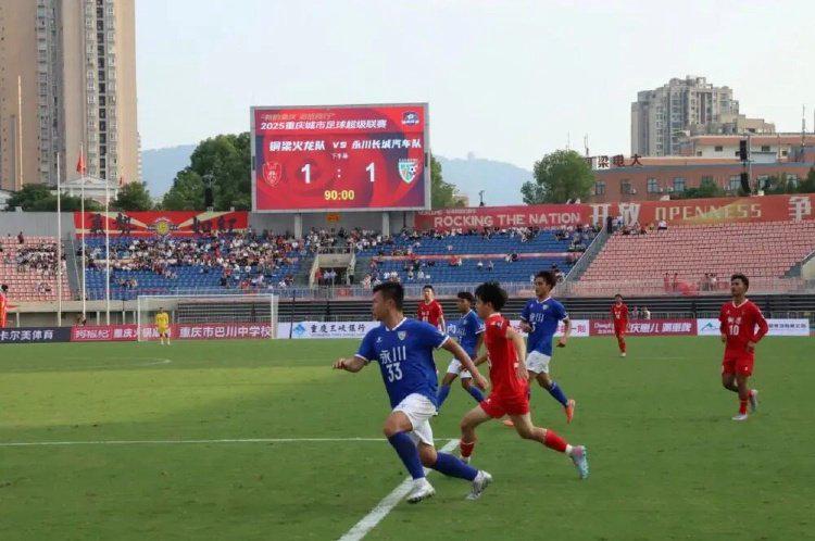 铜梁火龙队坐镇主场,迎战首战告负的永川长城汽车队。第17分钟,铜梁火龙队获得角球机会,41号球员童菲戈倒地铲射破门,帮助主队1:0领先。但7分钟后,永川长城汽车队就迅速扳平比分。经过90分钟激烈角逐,双方最终1:1握手言和。两轮比赛后,铜梁火龙队1胜1平积4分,永川长城汽车队1平1负积1分。