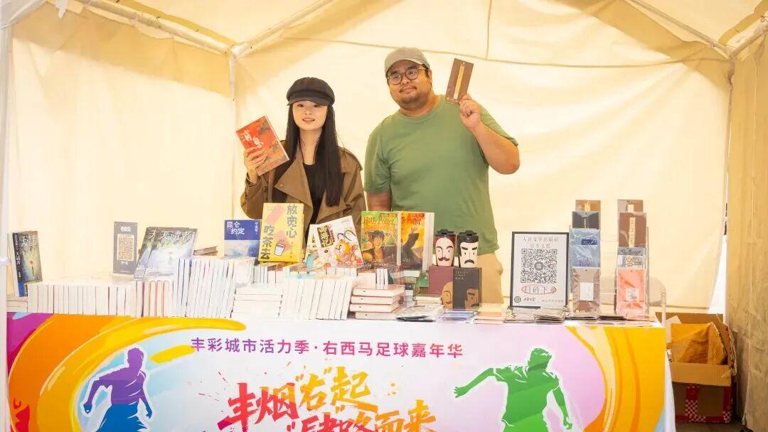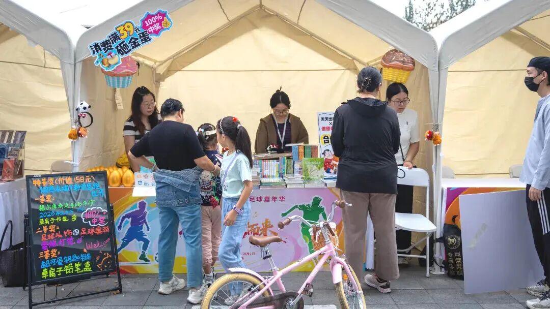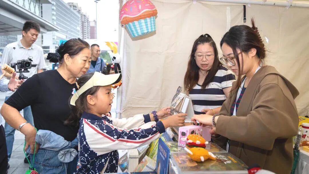 广场另一侧,由人民文学出版社、天天出版社等机构搭设的儿童主题书市同样人气高涨。绘本阅读区里,孩子们安静地看着书;轻食摊位前,家长手捧咖啡惬意交谈。“这里有哈利·波特IP周边、精选绘本,还有文创、小吃摊,既能陪孩子阅读,也能放松休息。”市民张先生感慨道。
